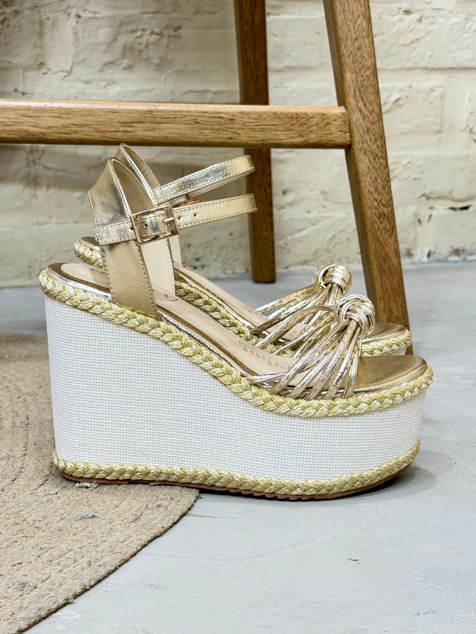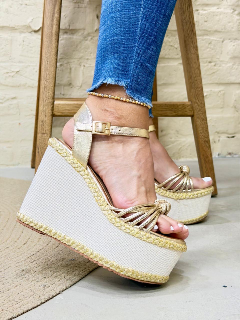 Plataforma alta con capellada de perlas tejidas a mano 🤍💎, acompaña de una hermosa trenza Yute natural 100% que la hace sobresalir ✨
